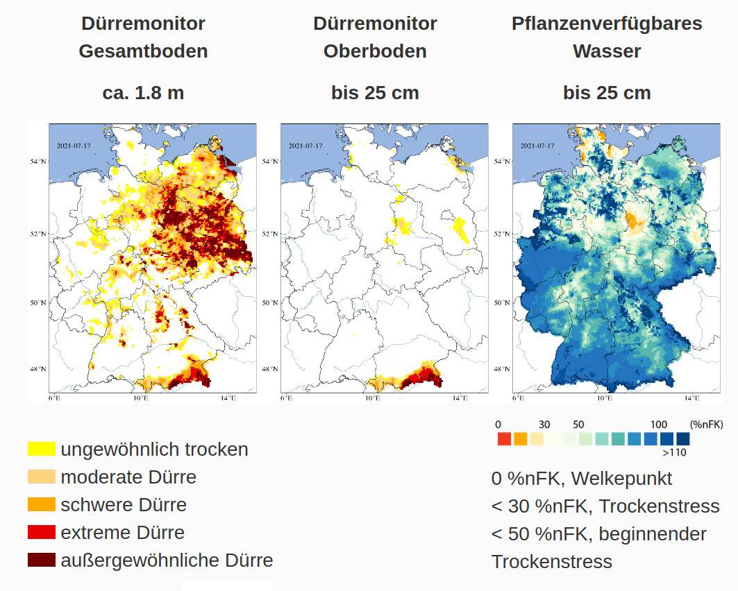 Abb. 18 Dürremonitor des Helmholtz-Zentrums vom Juli 2021