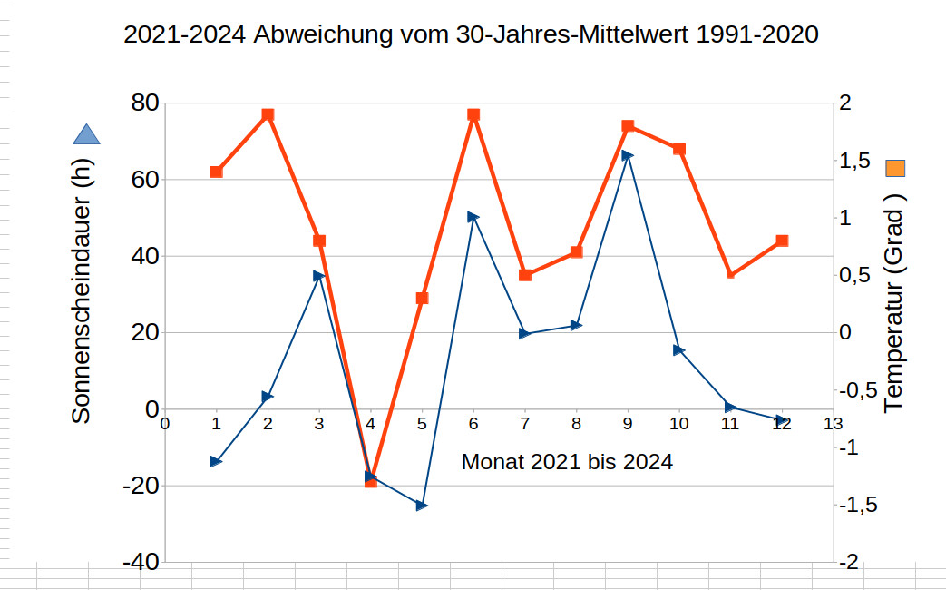 Abb. 24 Vierjahresdaten: Temperatur und Sonne