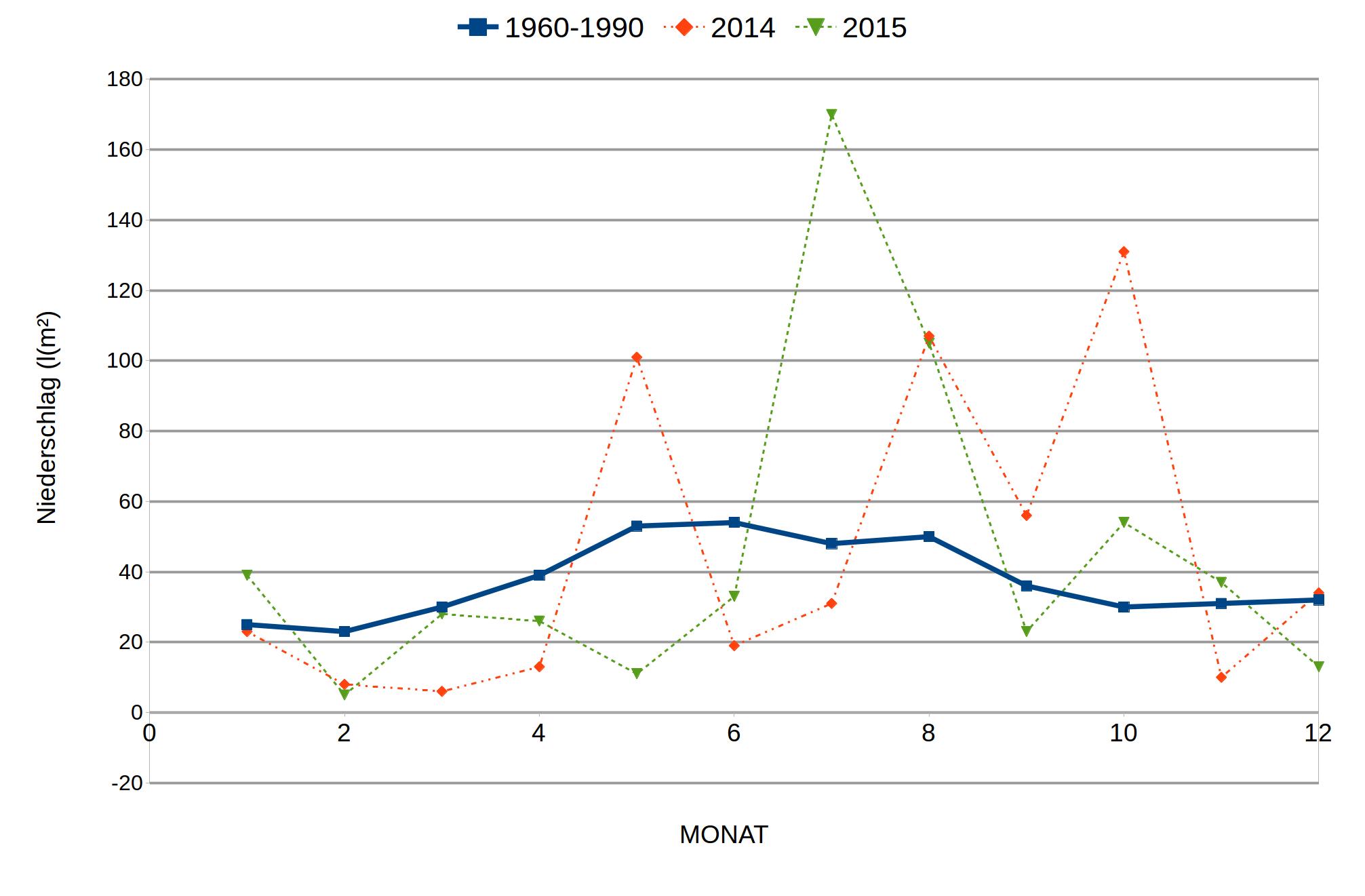 Besonders deutlich wird die Unzulässigkeit von Vergleichen zwischen aktuellen Monatsmittelwerten und dem Mittelwert der 30-Jahre-Daten an den Niederschlagsmengen (Abb.2). Wie schon bei den Tagesmitteltemperaturen sind auch die monatlichen Niederschlagsmittelwerte massiven Schwankungen unterlegen. In den aktuellen Wettermeldungen der Jahre 2014 und 2015 berichteten die "Experten" abwechselnd von einem "viel zu trockenen" oder "viel zu nassen" Monat. Mit 540 bzw. 547 l/m² sind jedoch ganz normale Jahre herausgekommen. Der 30-Jahre Mittelwert liegt bei 451 l/m². Wie er zustande kommt, lässt sich leicht abschätzen, wenn man 30 einzelne Jahreskurven übereinander legt. Vergleichen lässt er sich nur mit dem Mittelwert eines anderen 30-Jahres Zeitraumes. Das gleiche gilt natürlich auch für die Monatsmittelwerte. Man muss wohl davon ausgehen, dass die CO2-Eiferer die gleiche "Methodik" wie die Wetterexperten pflegen. Was also ist an der neuerlichen Katastrophenaussage, 2017 wäre das wärmste Jahr allerzeiten gewesen, dran ? Überhaupt nichts, so lange Weltjahresmittelwerte ohne Standardabweichung und ohne Festlegung konkreter Zeitintervalle verbreitet werden. Ansonsten hat die Information den Charakter eines beliebigen Messwertes wie z.B. in der obigen Abbildung. (siehe auch Zusammenfassung 1960-2020) |