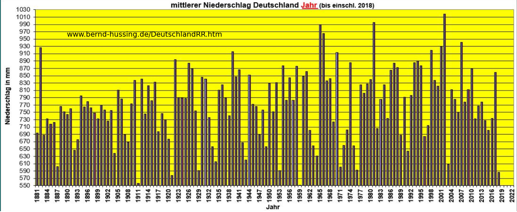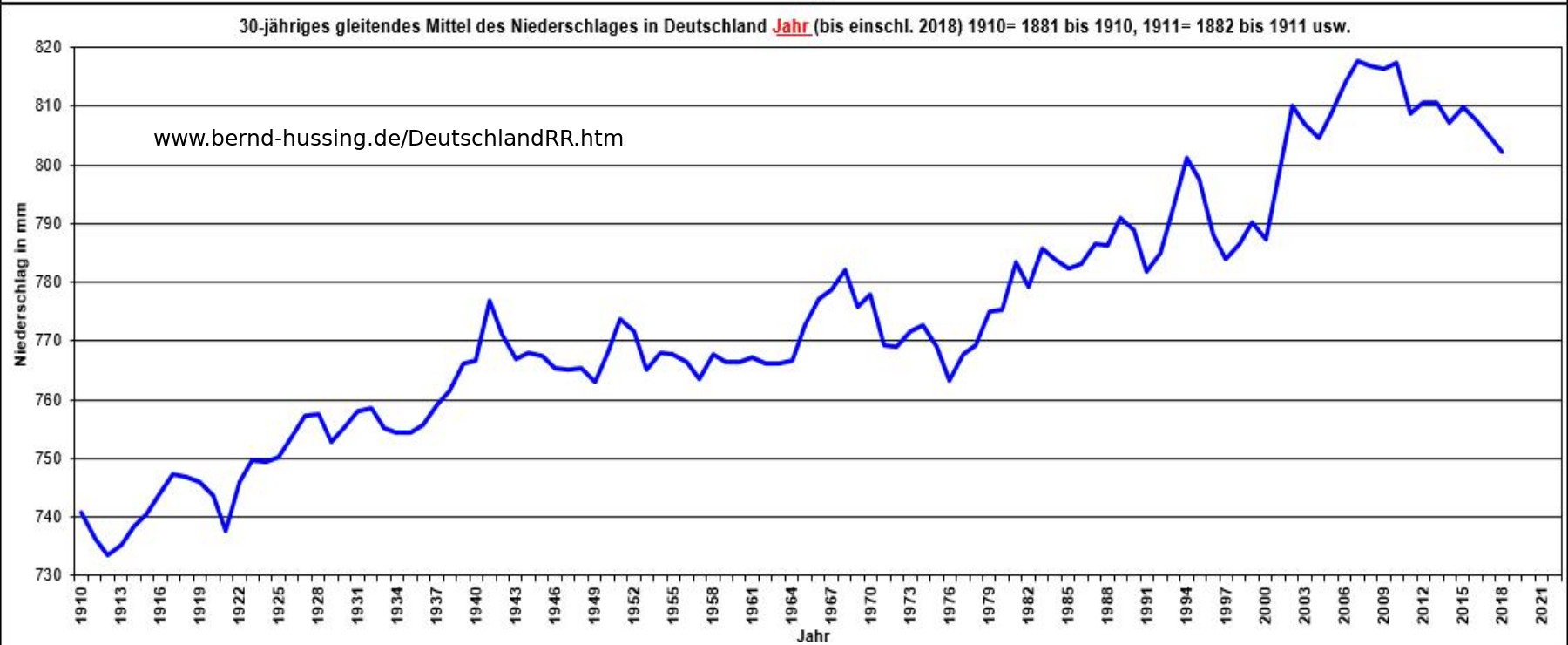 Ähnlich unseriös wird mit den Niederschlagsdaten umgegangen. Hochpolemisch werden - basierend auf einem einzigen! Jahr- die geringen Niederschläge im Jahr 2018 zur künftig ständigen Dürrekatastrophe erklärt, natürlich als Folge des vom Menschen verursachten Klimawandels. Schaut man den Niederschlagsverlauf der letzten 138 Jahre an, spricht nichts aber auch gar nichts dafür (Abb.9). Abb. 8a Besonders anhand der gleitenden