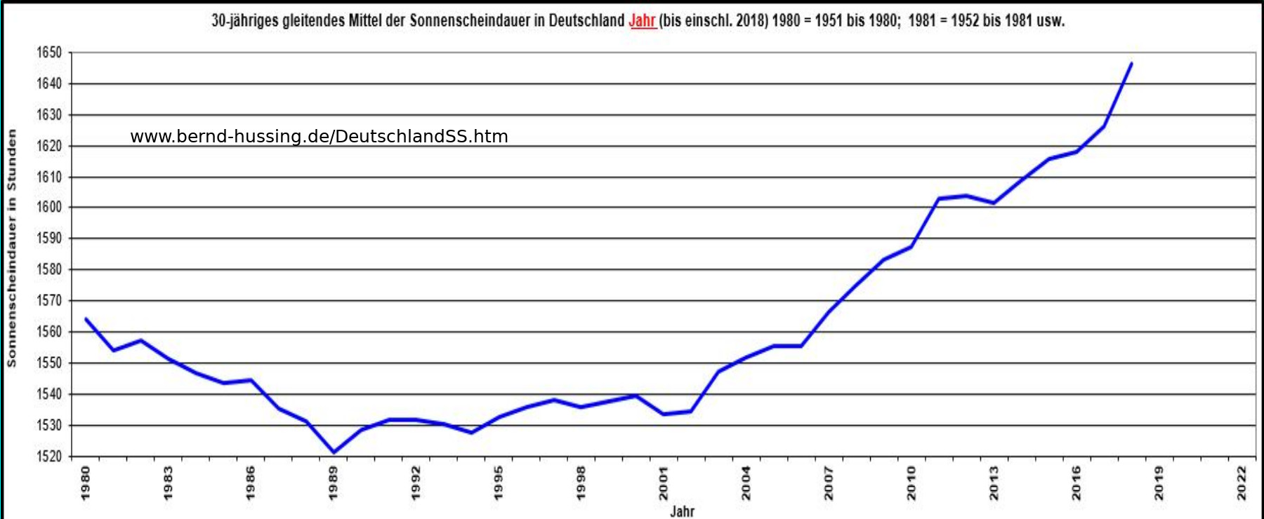 die im gleichen Zeitraum beobachtete Zunahme der Sonnenscheindauer
